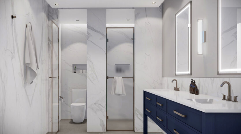 - Master suites include walk-in closets and separate water closets in ensuite bathroom.