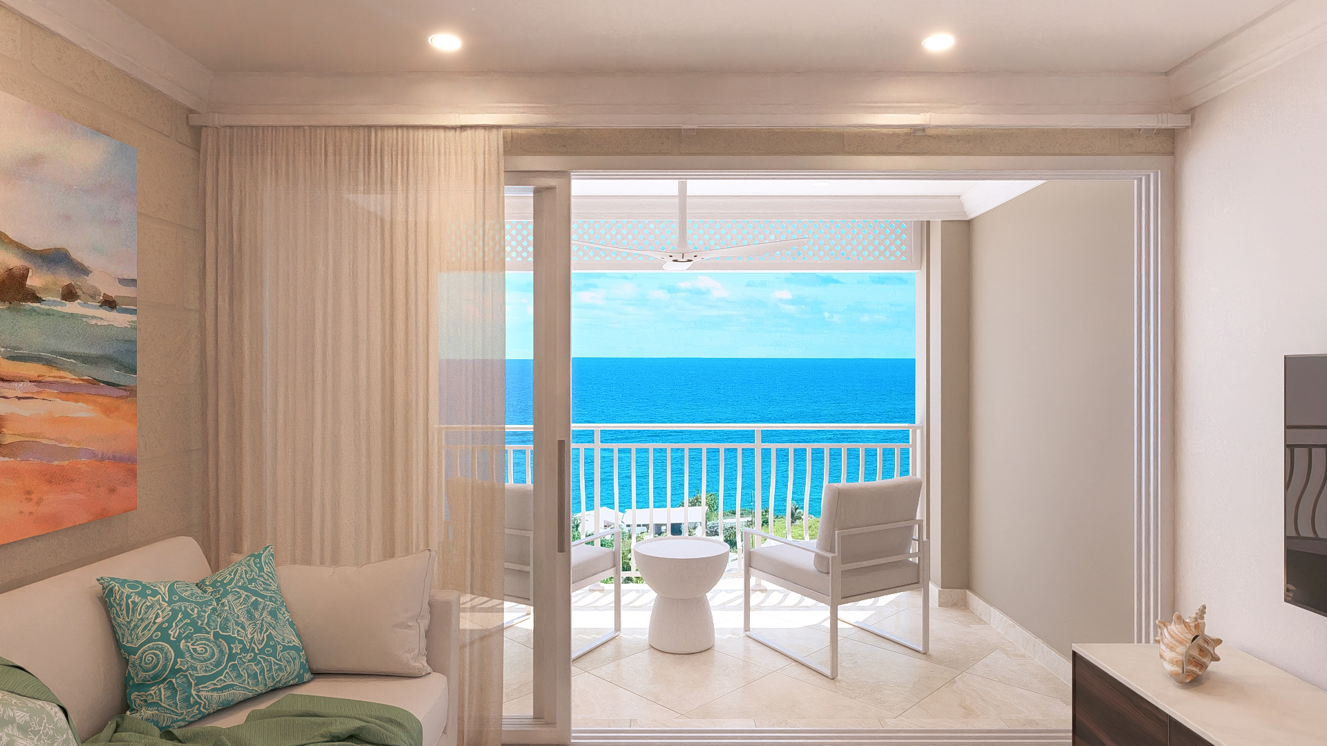 Located within Phase 3 of The Crane Private Residences, 5345 and 5346 is a stunning two-bedroom lock-off units that offers elegant interiors and breathtaking views of the Atlantic Ocean.